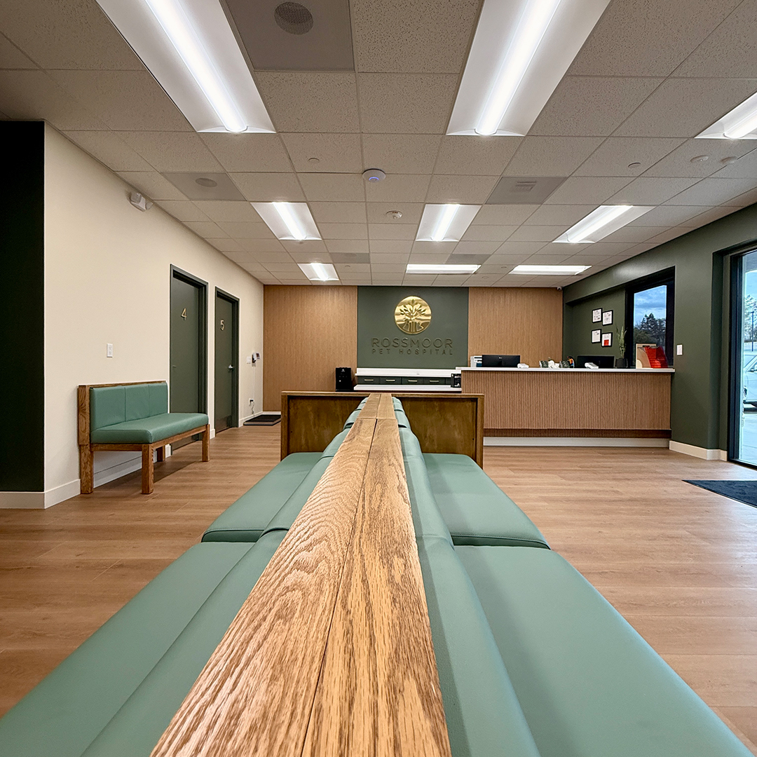 Take an inside look at our warm, modern, and thoughtfully designed space at Rossmoor Pet Hospital—designed inside and out to make every visit comfortable, stress-free, and tailored to the needs of the pets and people we serve.